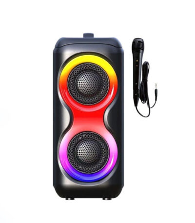 - Vibrant Aesthetics: The speaker features a visually appealing design, including dynamic RGB lighting accents, adding a touch of style to your music sessions.