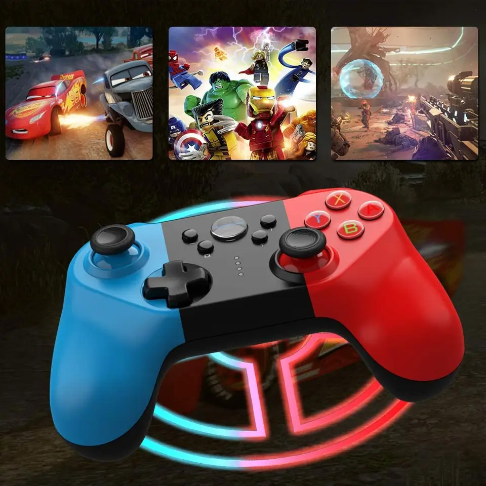 - Design: The controller has a split-color design, appearing in blue on one side and red on the other, resembling a popular console controller design.