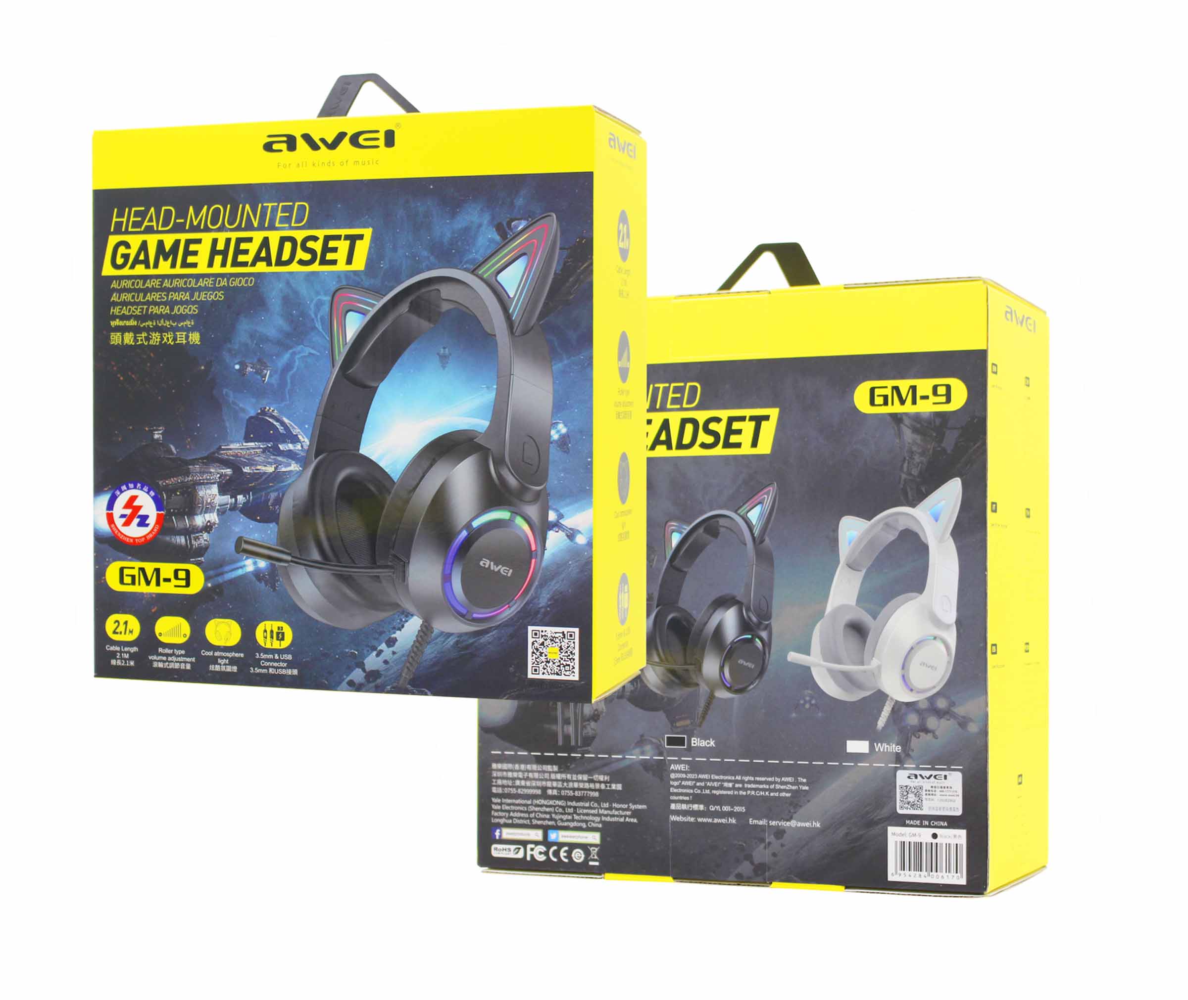 - Design: It’s a wired, over-ear headset, with some versions featuring unique cat ear designs and cool RGB lighting effects (mixed red, green, and blue for the black version, or cool blue for the white version).