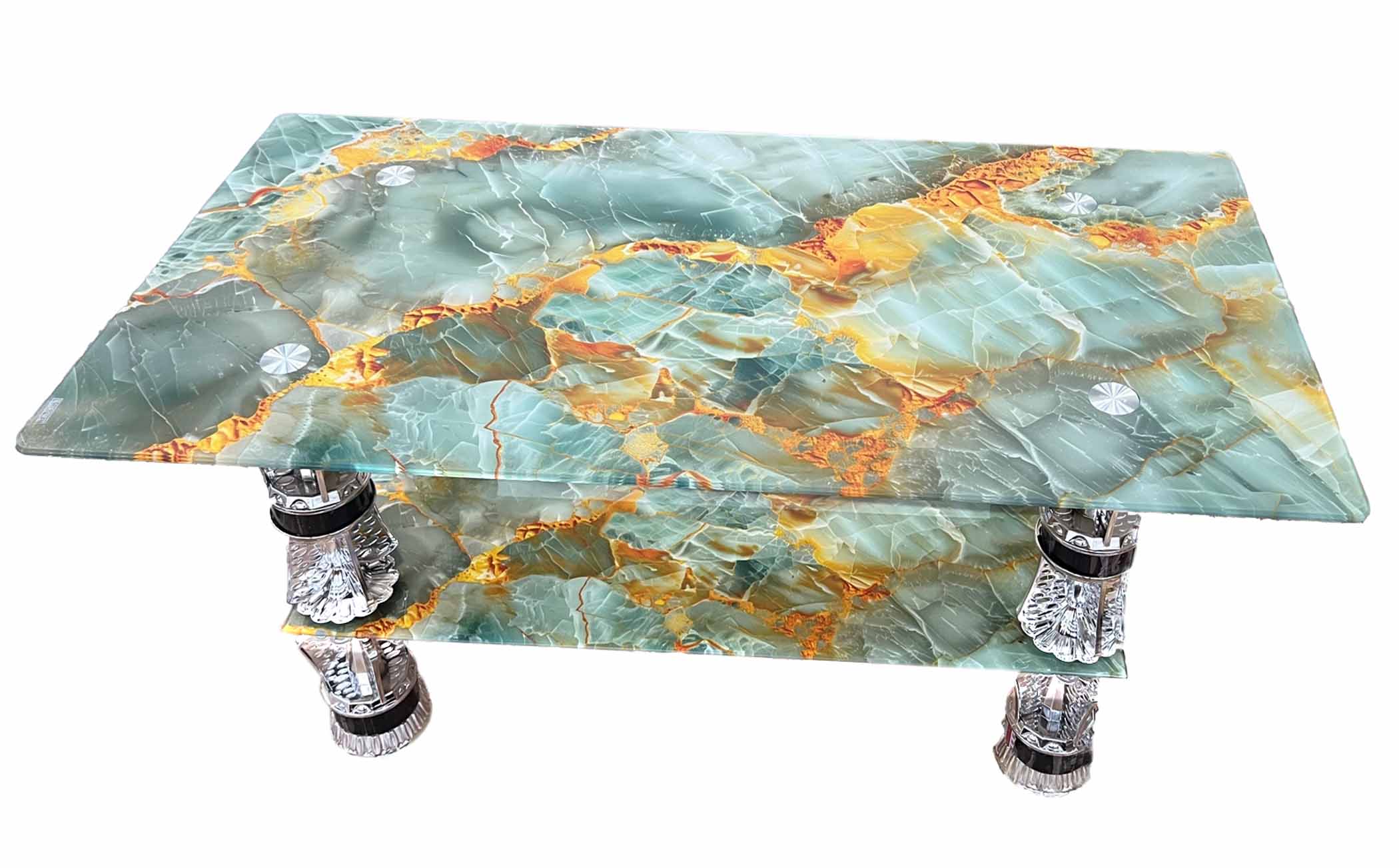 Center Table (green marble-like top)