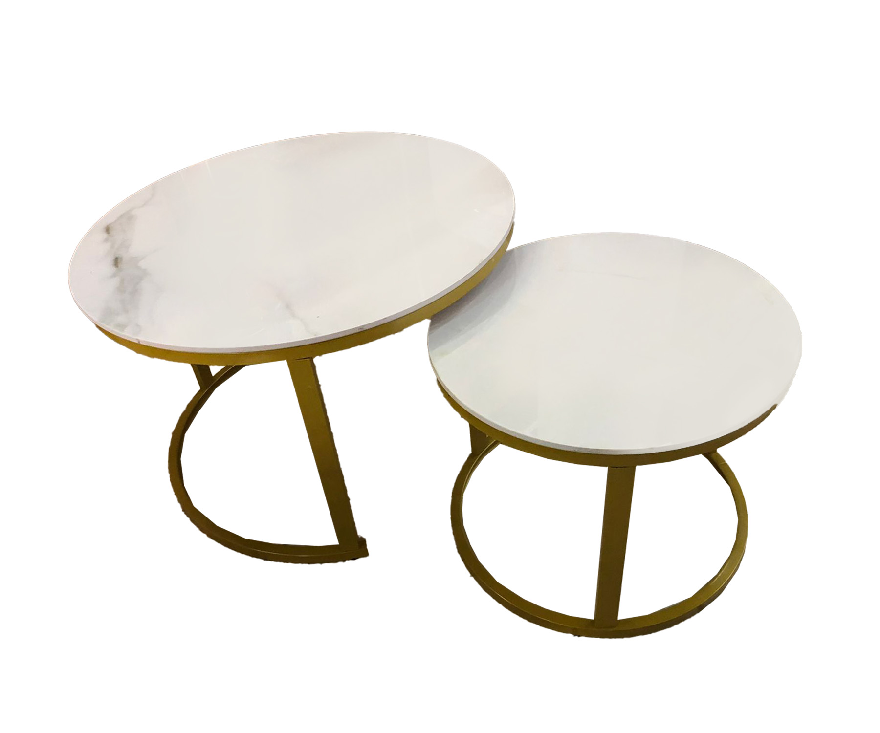 - Durable Gold Metal Frames: Supported by sleek, gold-colored metal frames, these tables are both stable and visually appealing.