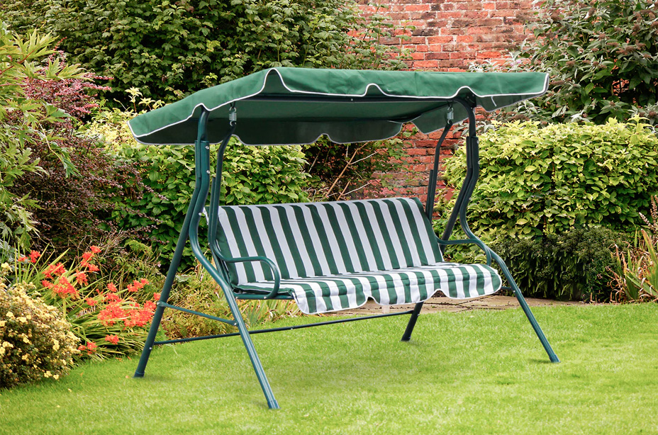 - Comfortable Seating: The swing includes thick, soft cushions and provides seating for two people. Heavy springs connect the swing to the frame for a smooth experience.