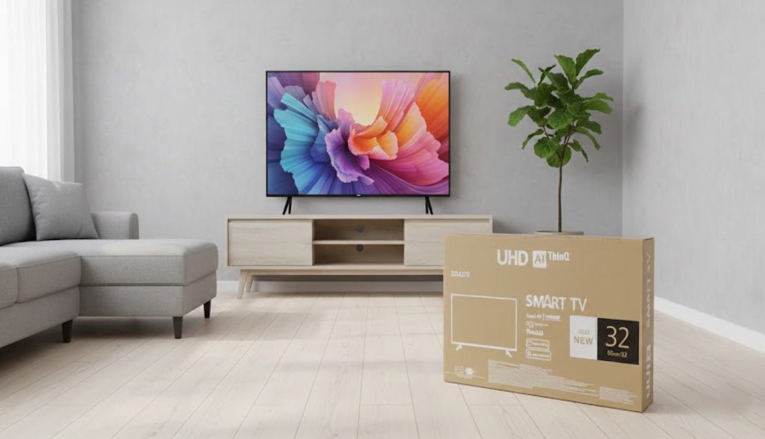 - Features a 32-inch (80cm) screen with Real 4K resolution.